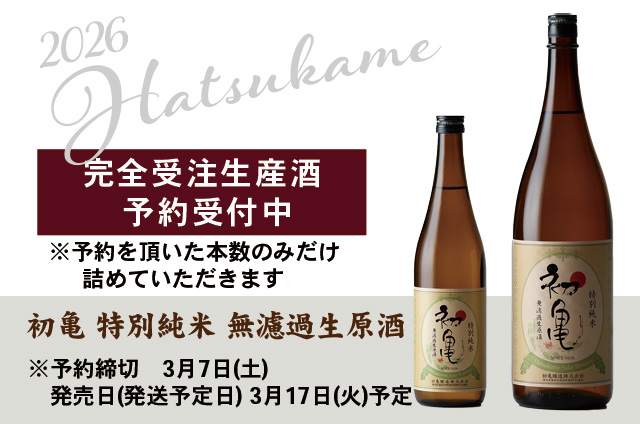 初亀 特別純米 無濾過生原酒 予約販売